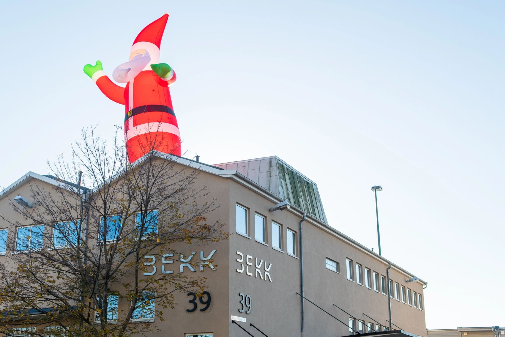 Den 26. Oktober stod det en 10 meter høy julenisse på taket av kontoret vårt. Det var signalet om at Julekalenderen var i gang! Ordet spredde seg, og omtrent 70 bekkere troppet opp på Skuret for å bli med på kickoff for julekalenderen. Noen var helt nye til kalenderen, mens andre hadde bidratt tidligere år. Jeg opplevde at alle hadde til felles en veldig nysgjerrighet for hva som skulle skje og hvordan de kunne bidra, selv om de ikke nødvendigvis hadde en plan klar for hva de skulle lage. Ideene strømmet på hele kvelden, og folk sparret med hverandre om ting som kunne være kule, morsomme og nyttige å dele. Det hjalp nok også på engasjementet at vi hadde julemat fra Strøm Larsen og en 10 meter høy nisse stående på taket.