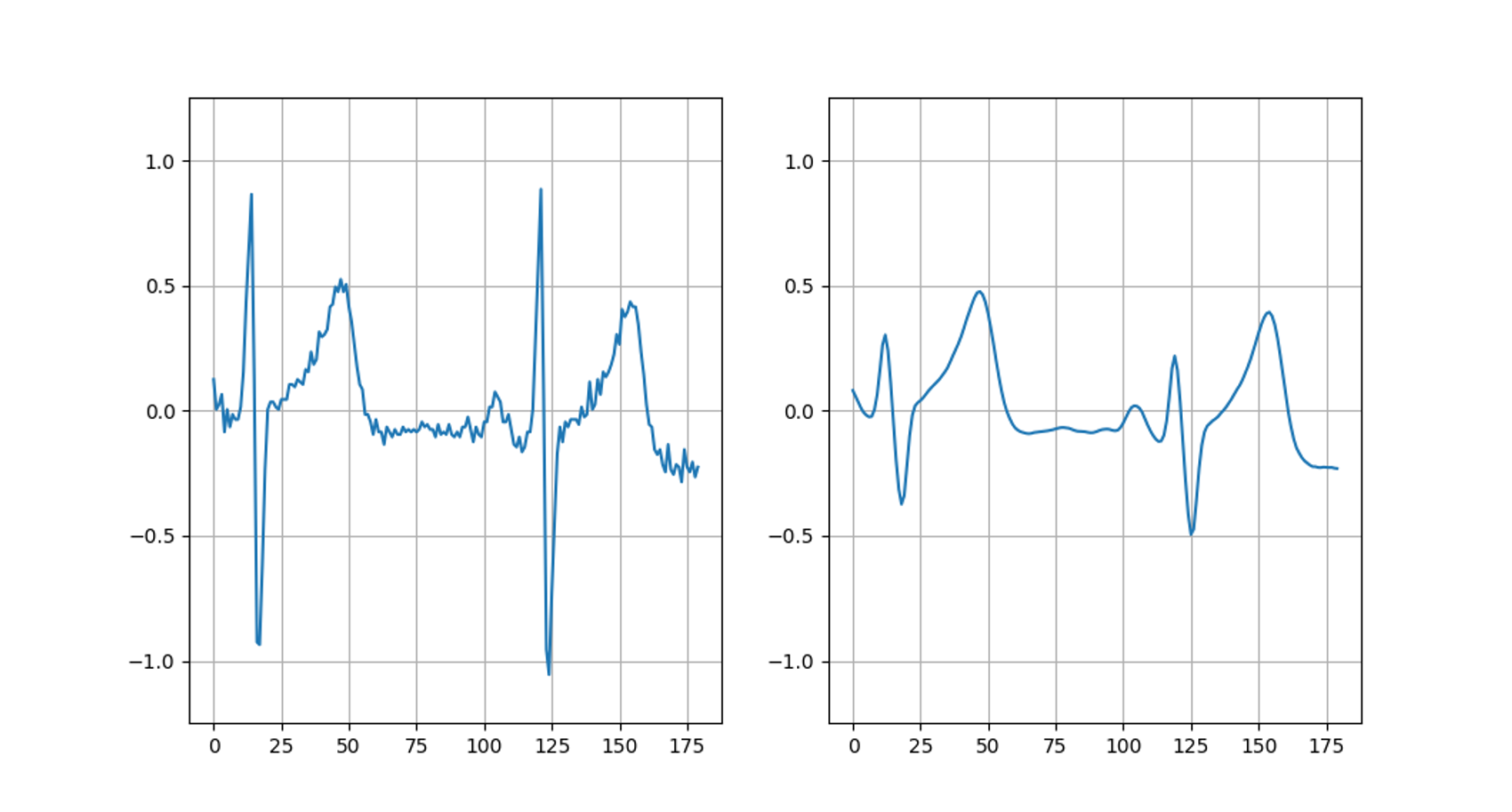 An ECG signal is produced by placing electrodes on the patient's limbs and chest to record the electrical activity of their heart, thereby producing a waveform of the type which is here exemplified by public data from WFDB: